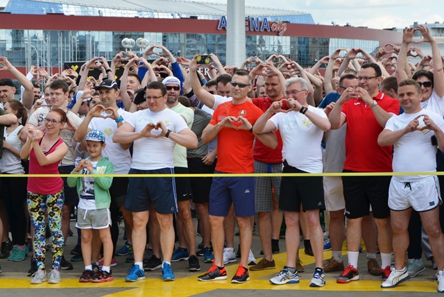 Сегодня в Минске впервые прошел массовый благотворительный забег в помощь детям по маршруту в форме сердца. «Забег тысячи сердец» провели компания velcom при поддержке НОК Беларуси и Министерства здравоохранения.