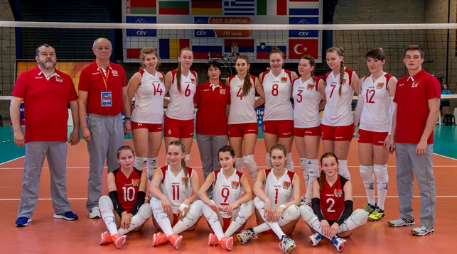 Белорусские волейболистки, в числе которых и 9 воспитанниц Брестского ЦОР по игровым видам «Виктория» вышли в полуфинал юниорского чемпионата Европы для игроков до 18 лет. Фото Белорусской федерации волейбола.
