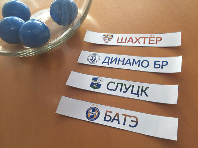 В минском Доме футбола прошла жеребьевка полуфинальных пар розыгрыша Кубка Беларуси. Финалист прошлого кубкового турнира борисовский БАТЭ дважды сыграет с брестским "Динамо". Фото АБФФ.