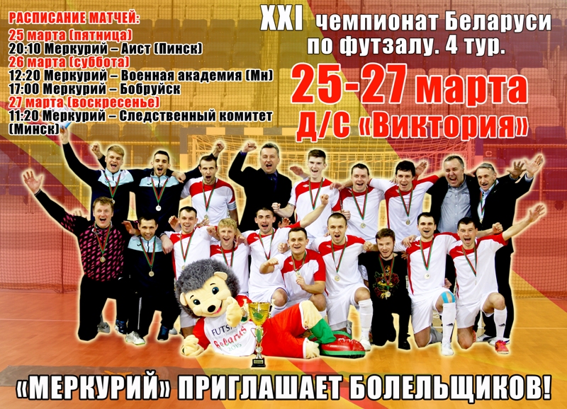 Три стартовых тура чемпионата Беларуси состоялись в этом году в Пинске, Гомеле и Червене. После них в турнирной таблице лидируют «Бобруйск» (5 побед и 1 ничья) и пинский Аист (4 победы и 1 ничья), которые пока не знают поражений в турнире. «Меркурий» на данный момент занимает шестое место среди восьми участников. Однако команда брестских таможенников провела всего три игры (2 победы и 1 поражение) и в случае успешного выступления в четырех встречах на домашней площадке она как минимум займет место в призовой тройке, дальнейшее распределение мест в которой пройдет в следующих турах в Минске и Гомеле.